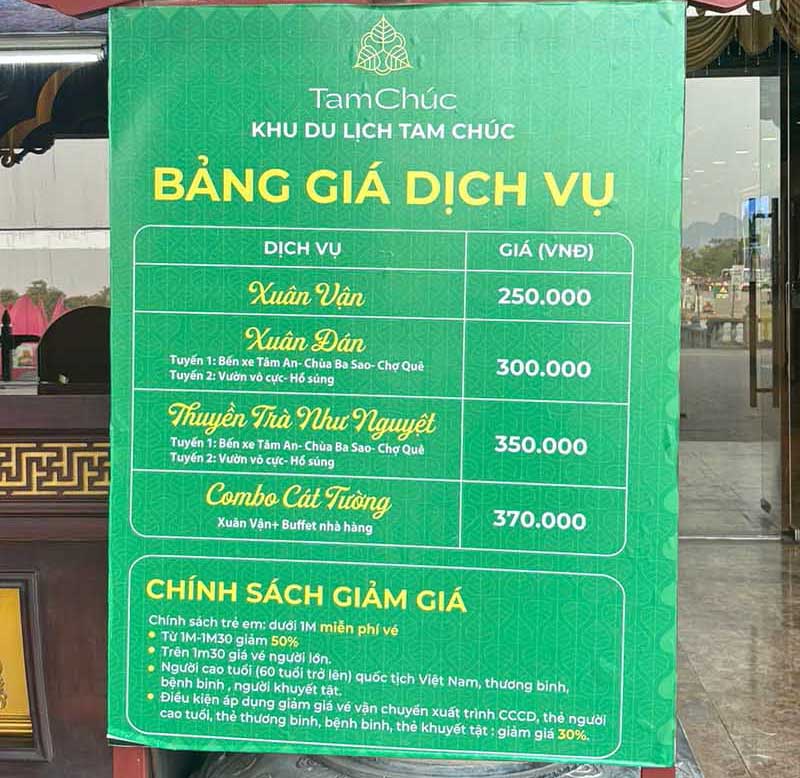 Bảng giá vé xe điện, du thuyền Chùa Tam Chúc
